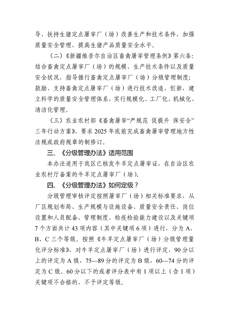 《新疆维吾尔自治区牛羊定点屠宰厂(场)分级管理办法(试行)》政策解读